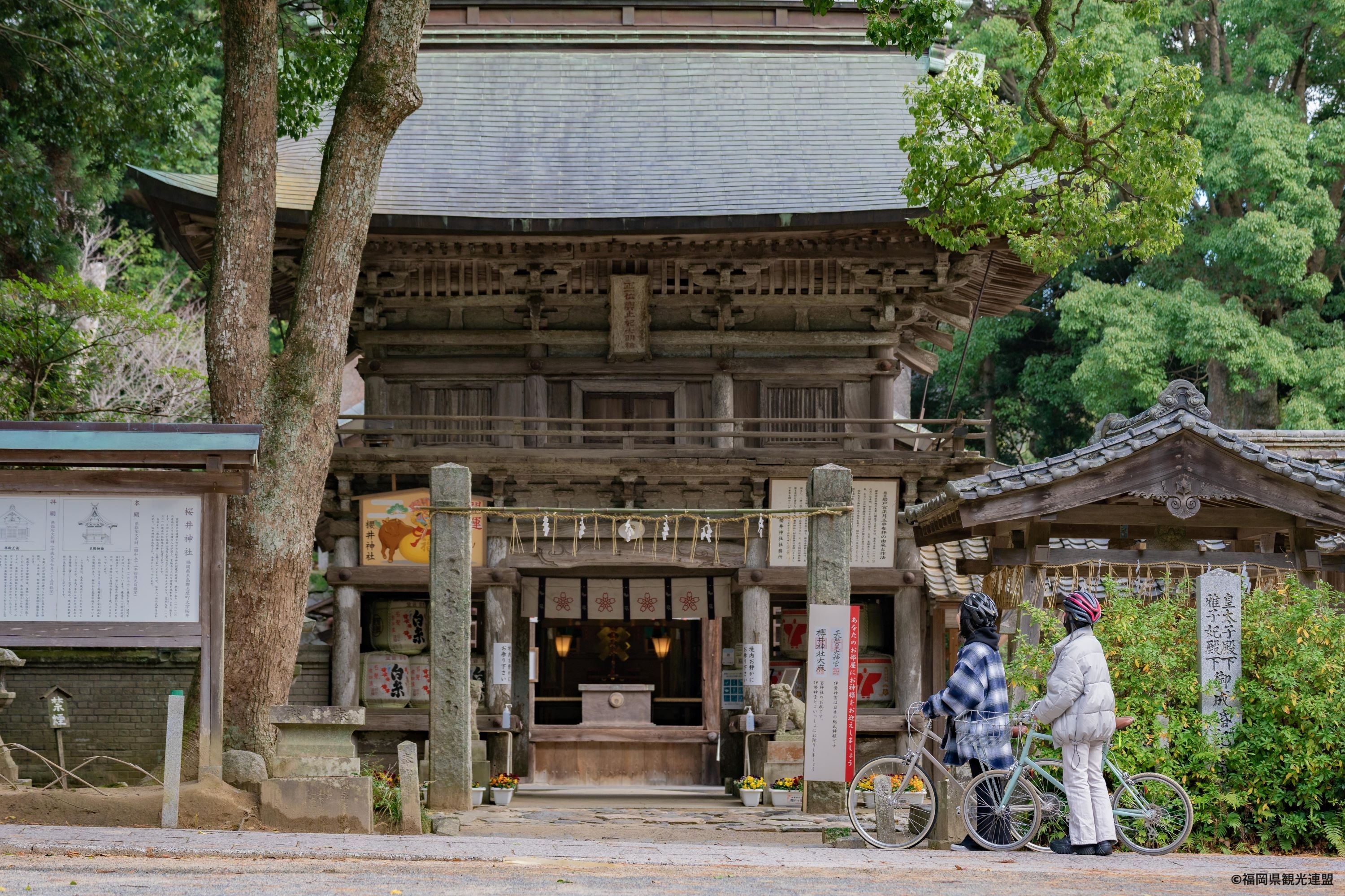 写真提供:福岡県観光連盟The origin of Sakurai Shrine dates back to a powerful thunderstorm in 1610, when the sacred cave of the rock door opened in a sudden flash of lightning, revealing the divine spirit. Upon hearing about this event, Tadayuki Kuroda, the second lord of Fukuoka Province, commisioned the construction of the present-day shrine building.