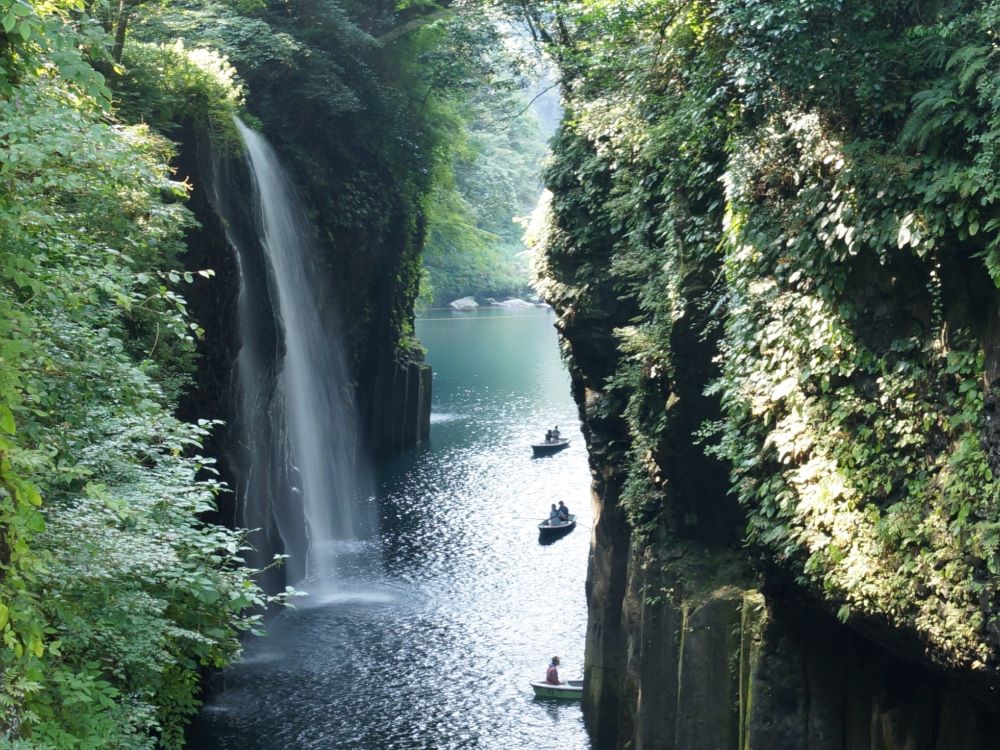Takachiho Gorge is a beautiful natural attraction in Miyazaki Prefecture. Formed by the volcanic activity of Mt. Aso, it features steep cliffs and the picturesque Manai Falls. Visitors can explore the gorge by walking along the pathways or renting a boat to paddle through the clear waters. Takachiho Gorge is also known for its lush greenery and unique rock formations, making it a popular destination for nature lovers and photographers.