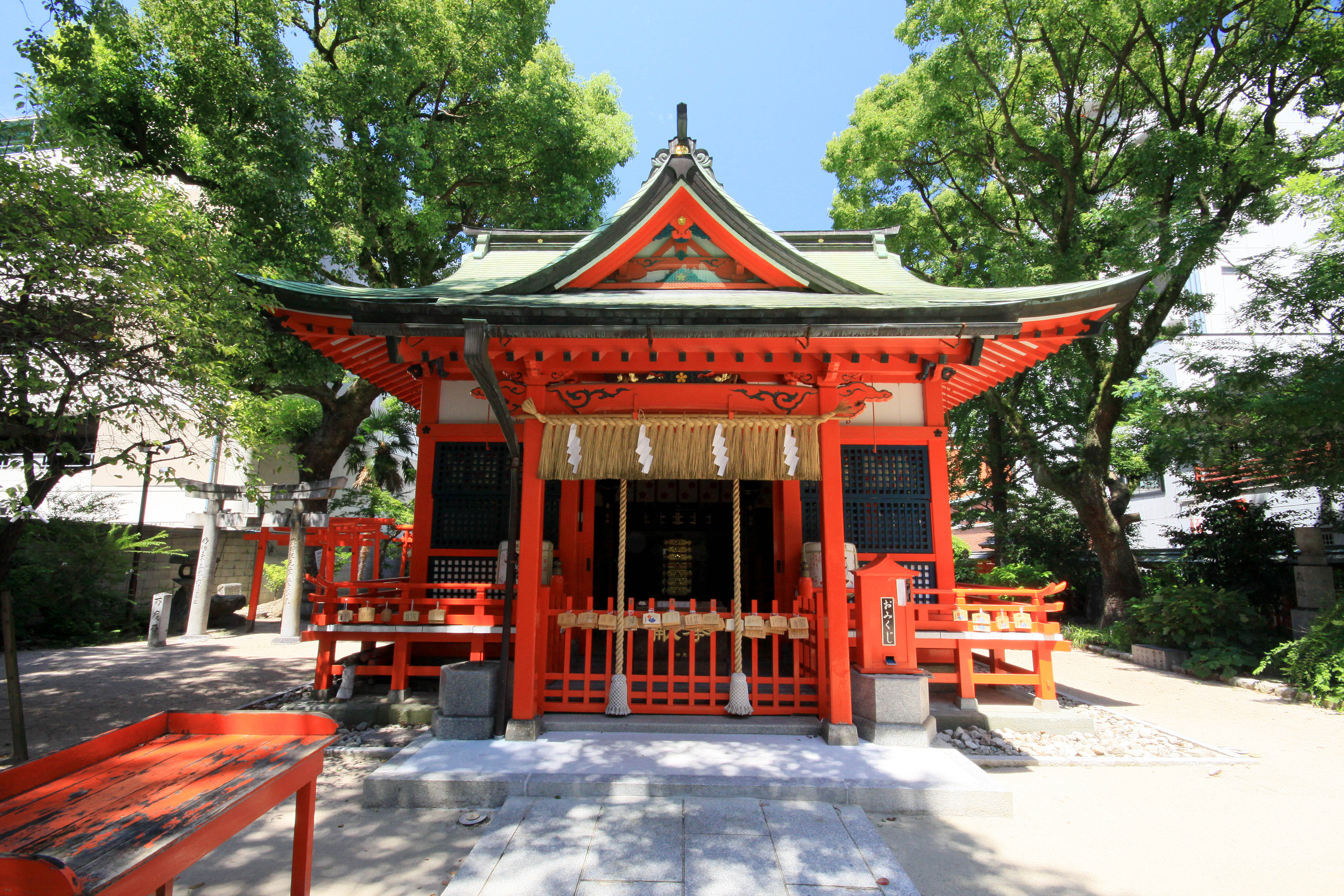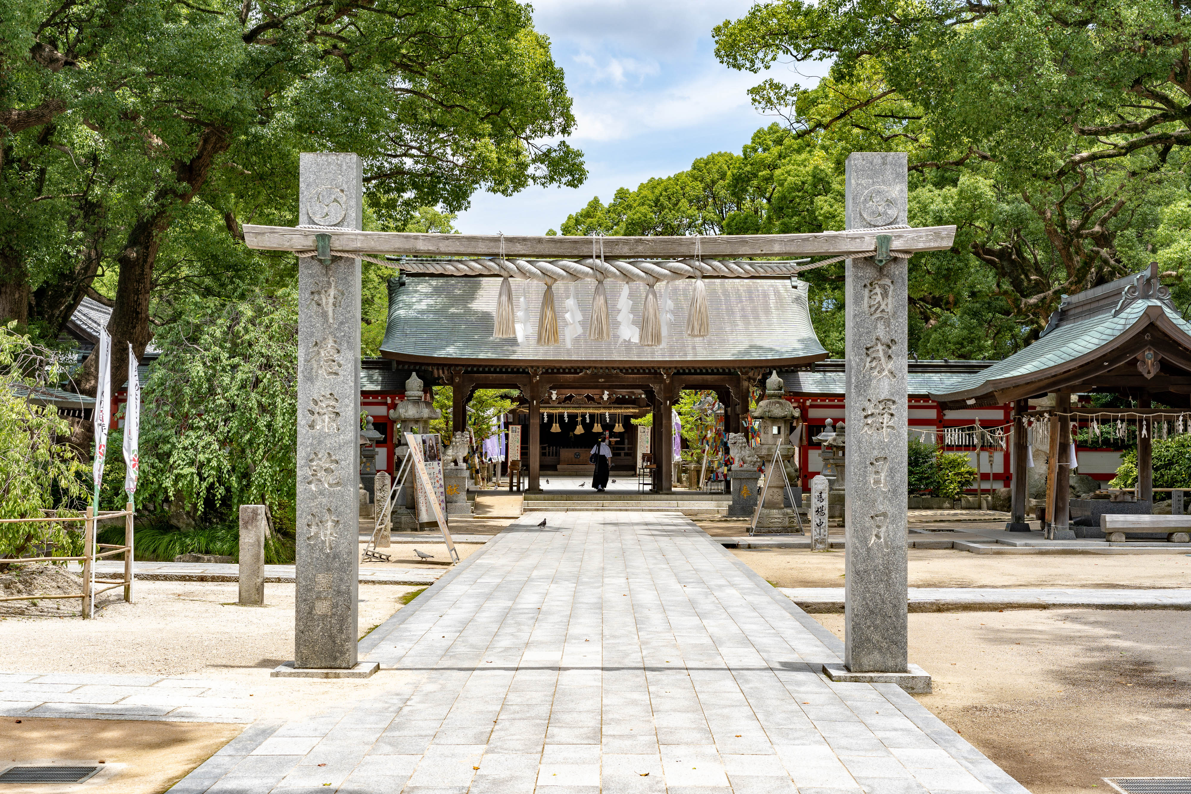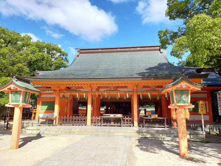 伊弉諾大神が禊祓をされた際にお生まれになった住吉三神を祀る。全国に多くある住吉神社の中で最初の神社と云われる。
